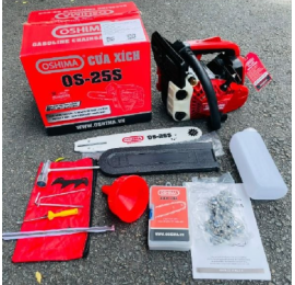 Cưa xích Oshima OS 25S là máy cưa chạy xăng 2 thì, thường dùng để cưa cây, cưa gỗ, cưa cành... máy cưa xích Oshima có công suất 900 W, cưa Oshima OS 25 là dòng máy cưa mini, có kích thước nhỏ gọn, thích hợp để tỉa cành.